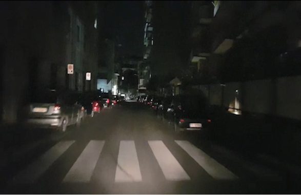 Incrociamo una ragazza che si fa luce con lo smartphone per attraversare la strada e non rischiare di inciampare. Il passo è ansioso, di chi prova una sensazione di disagio.
