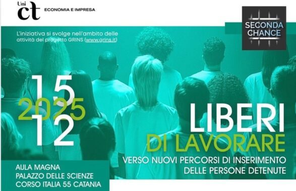 Con questi obiettivi nasce il convegno promosso dall’Università di Catania e Seconda Chance “Liberi di lavorare – Verso nuovi percorsi di inserimento delle persone detenute” che si terrà lunedì 15 dicembre nell’Aula Magna del Palazzo delle Scienze (Corso Italia 55 Catania) che vedrà la partecipazione di S.E. Mons. Luigi Renna, Arcivescovo Metropolita di Catania.