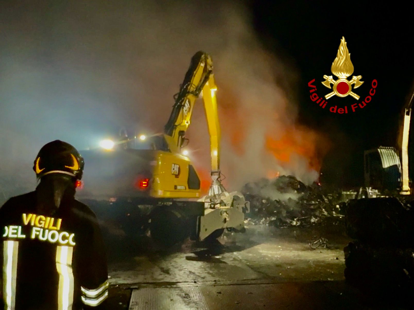 Le operazioni di spegnimento e messa in sicurezza dell’area sono in fase di completamento. I Vigili del Fuoco hanno circostritto l’area colpita dalle fiamme, utilizzando anche un mezzo meccanico per spostare il materiale coinvolto nell’incendio.