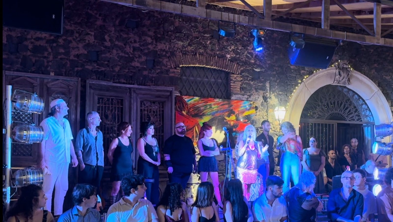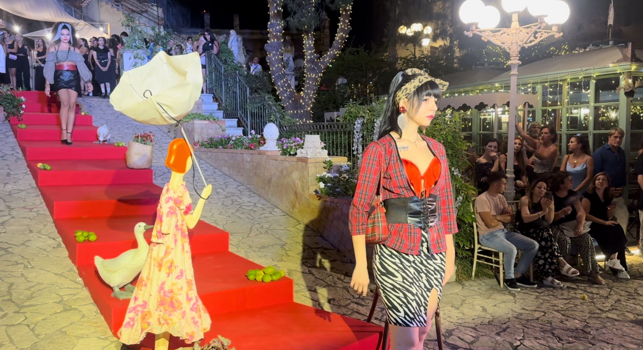 La sfilata con sessanta abiti ispirati dallo stile di Roberto Cavalli e altrettante giovani modelle, quarantacinque minuti di emozione con la riproposizione delle canzoni più belle di Amy Winehouse. Ma non solo: i suoni prodotti con strumenti musicali provenienti da tutto il mondo suonati da Giovanni H. Grasso, una donna-leopardo realizzata da Marisa Leanza, pittrice sui corpi, mentre con pennello digitale Tiziana La Piana ha proposto scorci di Catania e installazioni in tema: il travestito, il venditore di angurie, il gelataio.