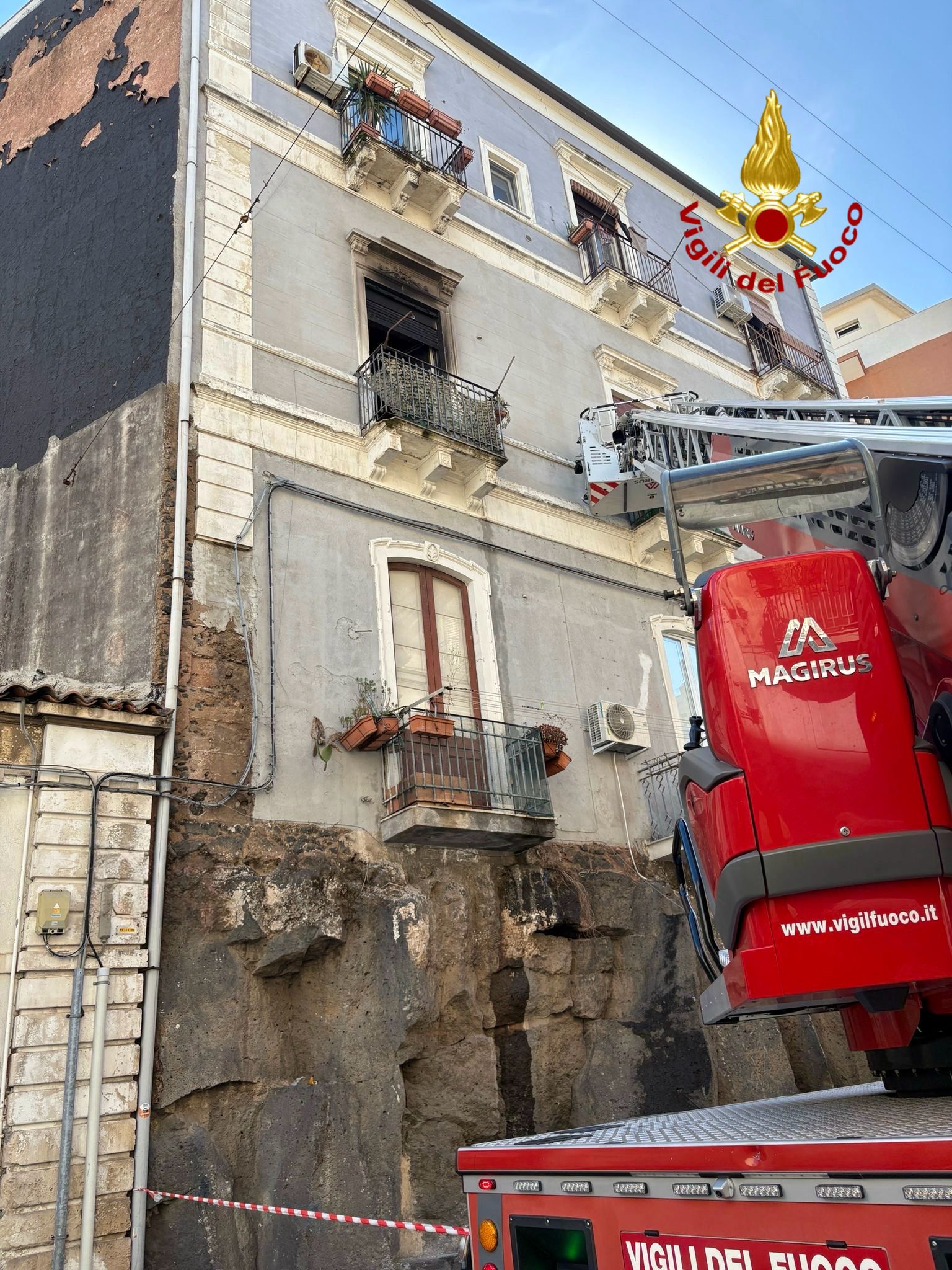 Sul posto sono immediatamente arrivati i Vigili del Fuoco del Comando Provinciale di Catania, che hanno operato con una squadra proveniente dalla Sede Centrale, supportata da autoscala, autobotte, mezzo logistico e funzionario di servizio.