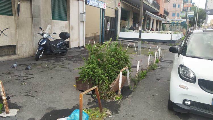 Il parco Falcone presenta per fortuna solo qualche ramo d’albero caduto e per il resto non sembra aver subito particolari danni, così come anche il viale Raffaello Sanzio, dove è presente soltanto un’aiuola abbattuta.