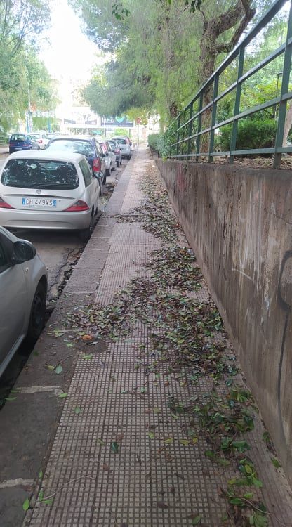Come è possibile vedere dalle immagini che abbiamo raccolto per voi, i marciapiedi di via Vittorio Emanuele Orlando e via Sassari, oltre a sembrare sempre più dissestati, sono ricoperti di foglie sporche più del solito.