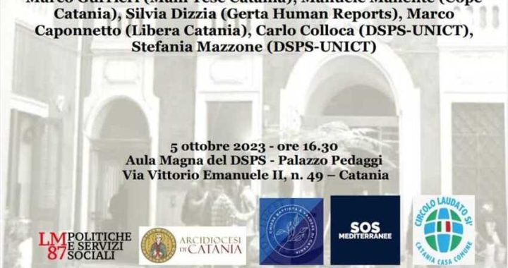 Il seminario – che si inserisce in una tradizione di studi e di ricerche multidisciplinari in tema di processi migratori, nonché di attività di formazione e di terza missione del Dipartimento di Scienze Politiche e Sociali – si terrà il 5 ottobre, alle ore 16.30, nell’Aula Magna del DSPS, in Via Vittorio Emanuele II, n. 49 – Catania. I lavori saranno aperti da Pinella Di Gregorio, Direttore del Dipartimento di Scienze Politiche e Sociali. Interverranno: Marco Gurrieri (Mani Tese Catania), Manuele Manente (Cope Catania), Silvia Dizzia (Gerta Human Reports), Marco Caponnetto (Libera Catania), Carlo Colloca (DSPS-UNICT), Stefania Mazzone (DSPS-UNICT). Introduce e modera: don Nandino Capovilla (Consigliere Nazionale di Pax Christi).