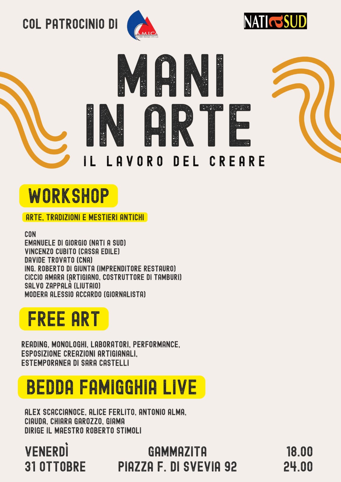 Catania si prepara ad accogliere “Mani in Arte – Il lavoro del creare”, un evento che rende omaggio al valore del gesto creativo e al potere trasformativo delle mani. La manifestazione è promossa da Nati a Sud, in collaborazione con Gammazita e con il patrocinio della Cassa Edile di Catania.