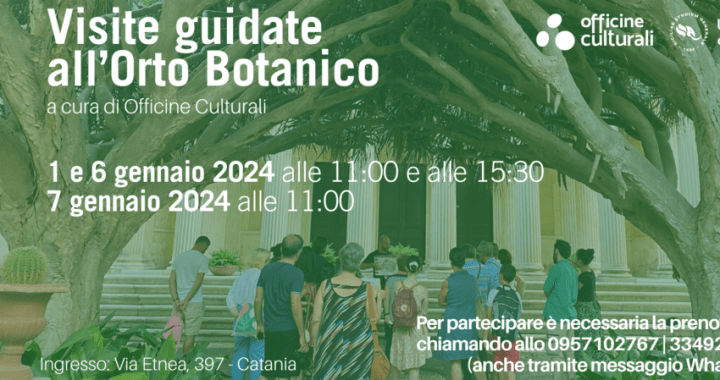 L’1 e il 6 gennaio 2024 alle 11 e alle 15,30 e il 7 gennaio alle 11 visite guidate all’Orto Botanico di Catania a cura di Officine Culturali.