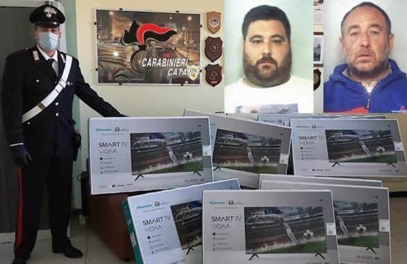 I due infatti, dopo essere entrati all’interno della recinzione ed aver aperto il vano di carico del camion, avevano effettuato il trasbordo dei televisori sulla loro Fiat Grande Punto, noleggiata per lo scopo, nascondendo quindi tra la vegetazione altri apparecchi per un successivo raid.