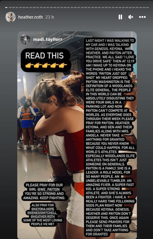 L’allenatrice della cheerleader, Lynn Shearer, ha fornito l’identità della ragazza ferita gravemente, Payton Washington.