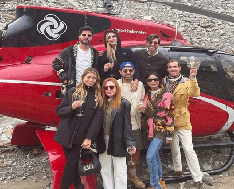 Perché la 35enne moglie di Fedez ha scelto un passaggio in elicottero su un ghiacciaio in Svizzera per consumare un bicchiere di champagne con l’amica e altra influencer Chiara Biasi e un gruppetto di amici.