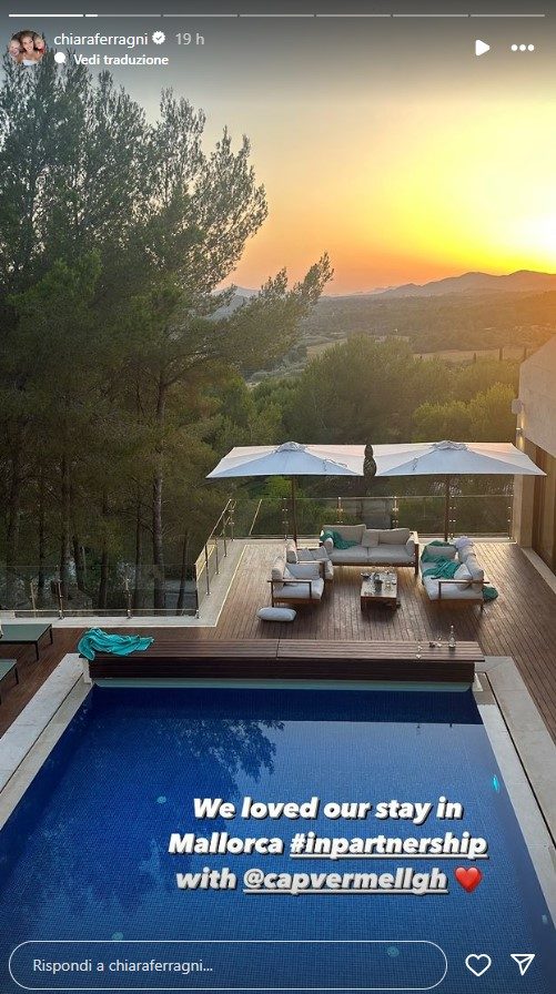 Chiara Ferragni, che secondo “radiogossip” si starebbe frequentando con un medico toscano da un po’ di tempo, è volata a Maiorca per festeggiare con le amiche l’addio al nubilato di Veronica Ferraro. Tra le sue Storie ha condiviso la foto della struttura dove alloggia, ossia il Cap Vermell Grand Hotel, precisando che si trattava di una partnership.