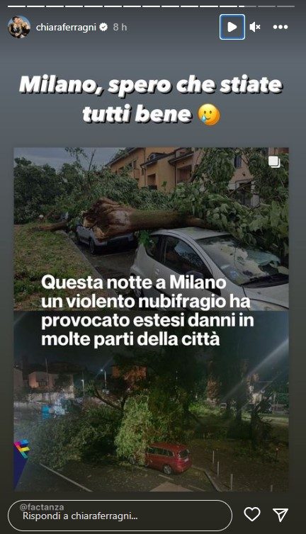 Poco prima, per non fare torto a nessuno, aveva pubblicato un’altra Storia in cui ha mandato un messaggio di sostegno alla città di Milano, colpita da un terribile nubifragio.