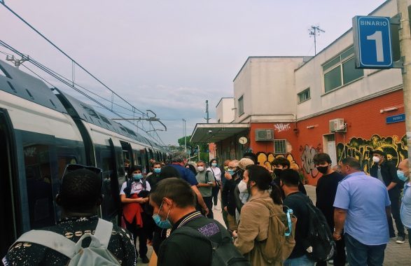 Napoli – Ennesimo weekend di passione per i poveri utenti della Circumvesuviana. Un uomo è senza mascherina così il capotreno, con l’ausilio di un vigilantes, fa scendere tutti dal convoglio alla stazione di Barra, senza fornire nessun tipo di spiegazione ai viaggiatori. Per fortuna subito scatta la solidarietà tra gli utenti: “Te la diamo noi una mascherina” e il convoglio riparte verso Napoli-Garibaldi.