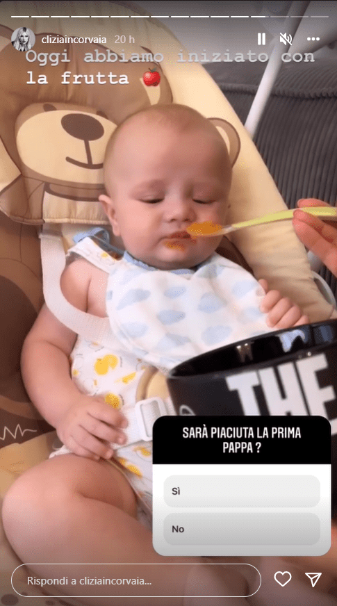 Quando il piccolo aveva due mesi, la modella e influencer ha dovuto smettere di allattarlo perché non aveva più latte e così ha iniziato con lo svezzamento, passo dopo passo, fino al momento della prima frutta, condiviso proprio oggi.