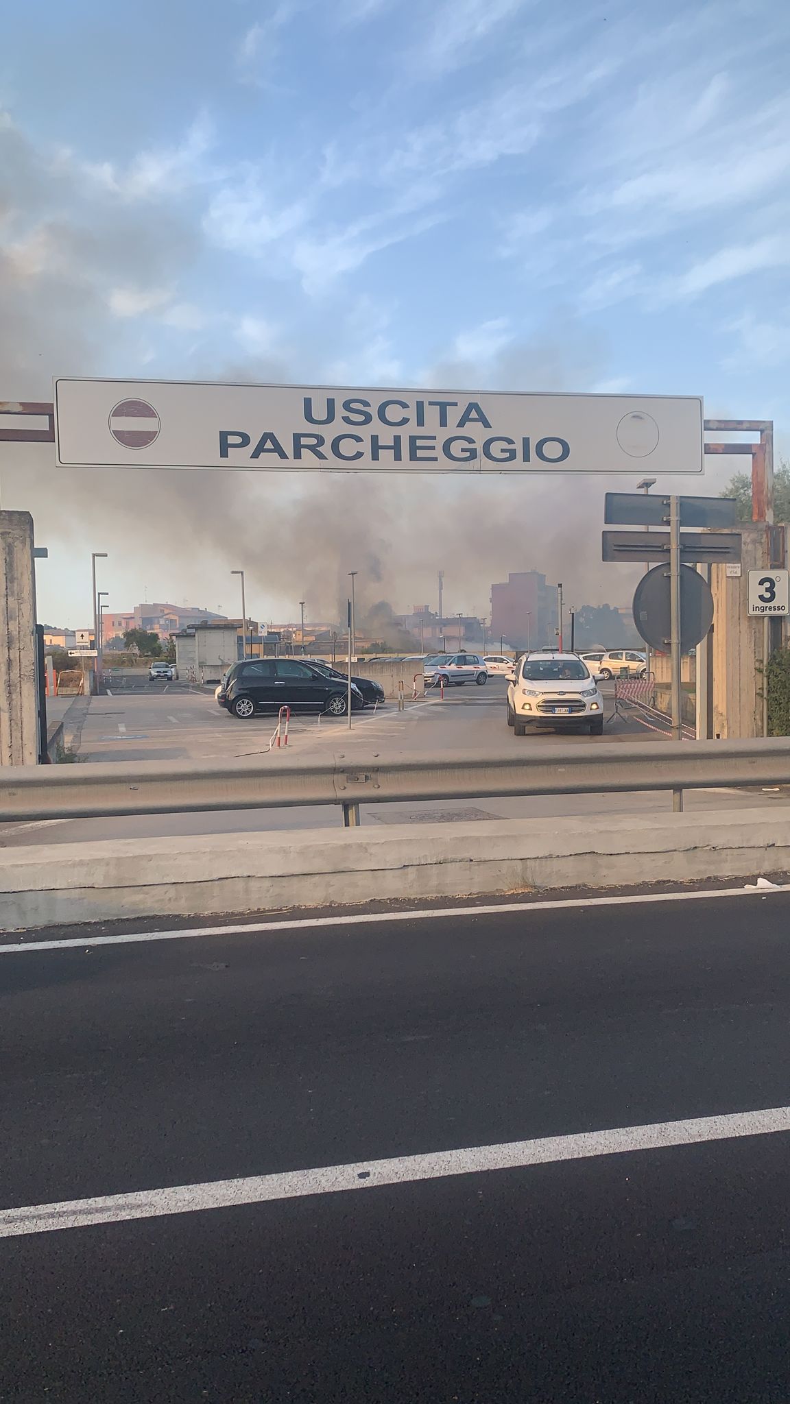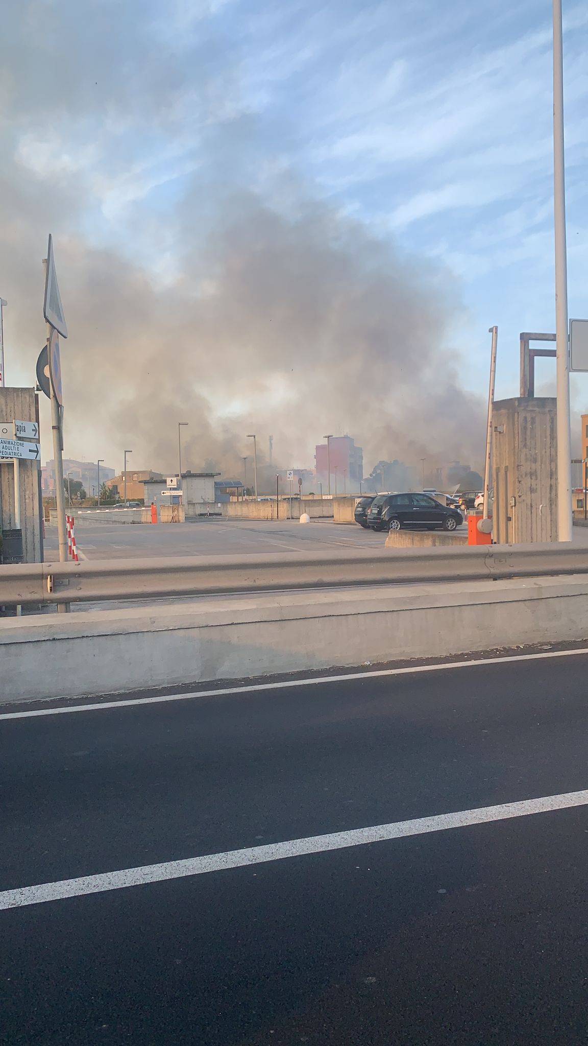 Una coltre di fumo piuttosto densa è visibile dallo spazio dirimpetto all’ingresso dell’ospedale Garibaldi Nesima a Catania.