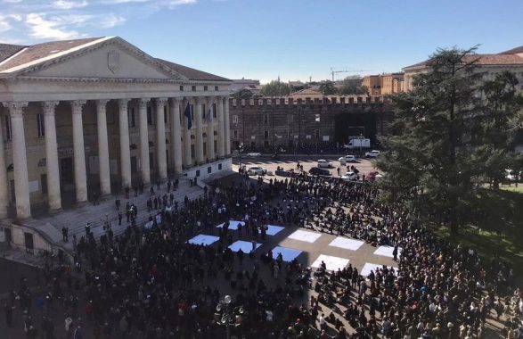 Erano diverse centinaia fra titolari di bar e ristoranti della città e della provincia, ma anche di altri settori economici. La manifestazione di Confcommercio, questa mattina in piazza Bra’, ha raccolto una larga adesione per manifestare contro la misure adottate con l’ultimo Dpcm. In particolare, per dire ‘no’ alla chiusura dei ristoranti e dei bar a partire dalle ore 18 e la totale sospensione di alcune attività come palestre, teatri, sale da concerto, da ballo e cinema.