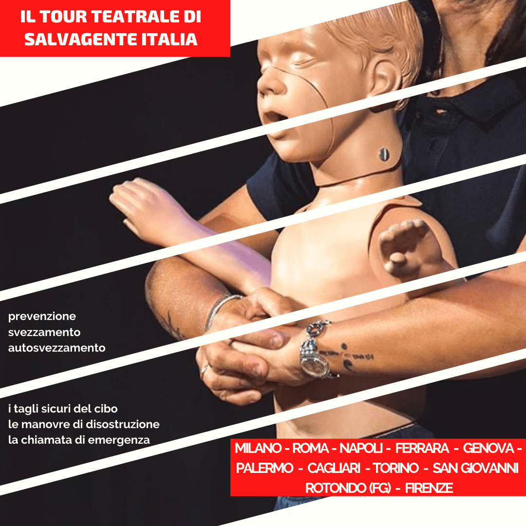 Salvagente Italia, l’associazione che si occupa di diffondere le manovre di rianimazione cardiopolmonare e disostruzione tramite corsi di prevenzione in caso di incidenti pediatrici e di primo soccorso pediatrico, torna nei teatri italiani.