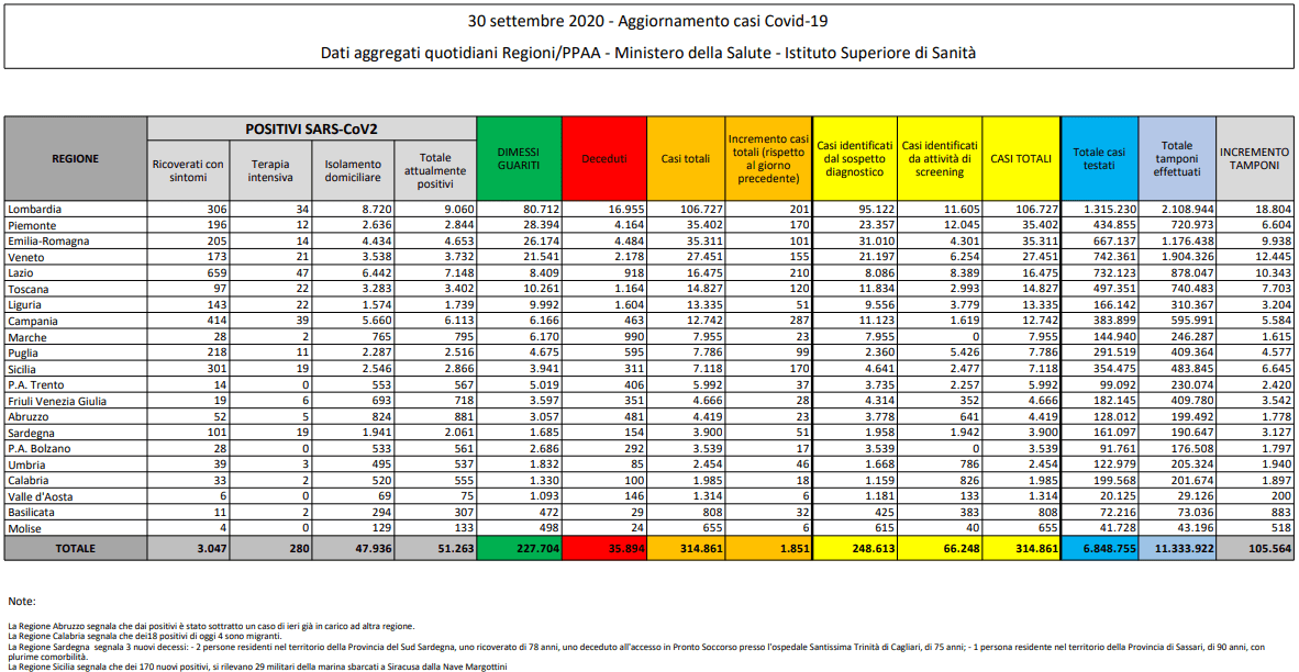 La situazione in Italia: nelle ultime 24 ore c’è stato un incremento di 1.851 casi, (200 più di ieri) ma con circa 15mila tamponi in più: 105.564 contro 90.185. Le vittime da registrare sono 19 (ieri sono state 24). Nessuna regione fa registrare zero nuovi casi e la Campania, è quella con il maggior incremento, 287 nuovi casi. Seguono Lazio (+210), Lombardia (+201), Piemonte e Sicilia (+170).
