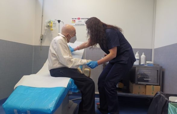 Sono le parole del suo racconto prima di entrare all’interno del percorso vaccinale. Proprio durante il secondo conflitto mondiale, Antonio Bonajuto ha infatti prestato servizio come ufficiale del Regio esercito, dopo l’8 settembre si rifiutò di collaborare con i nazisti, così venne deportato in Germania. Ma il signor Antonio è solo uno dei tanti anziani che in questi giorni si sono presentati nei due punti vaccinali dell’Azienda. Da sabato 20 sono circa 1.200 le dosi somministrate agli over 80, tra Policlinico e San Marco, non poche se si considera che la fascia oraria loro dedicata è solo quella pomeridiana, al mattino si continua con le vaccinazioni del personale universitario delle Facoltà diverse da Medicina, oltre a ai richiami per chi ha già ricevuto la prima dose.