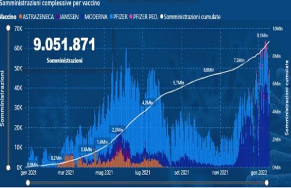 Con riferimento alla fascia d’età 5-11 anni, i vaccinati con una dose si attestano al 20,64% del target regionale. Tra i bambini, 8.368 pari al 2,70% risultano con ciclo primario completato. Dal 10 gennaio rientra nel target delle terze dosi la fascia 12-15 anni e si è ridotto a 120 giorni il termine dopo il quale, dal completamento del ciclo primario o dall’ultima infezione da covid-19, è possibile effettuare la terza dose. Finora complessivamente i vaccinati con dose aggiuntiva/booster sono 1.760.473.