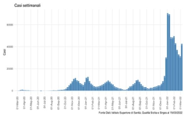 Nella settimana dal 7 al 13 marzo si assiste ad un aumento della curva epidemica. L’incidenza di nuovi casi è pari a 42.602 (+36,3%), con un valore cumulativo di 881,35/100.000 abitanti. Il tasso di nuovi positivi più elevato rispetto alla media regionale si è registrato nelle province di Agrigento (1242/100.000 abitanti), Ragusa (1119/100.000) e Trapani (1110/100.000). Le fasce d’età maggiormente a rischio risultano quelle tra gli 11 ed i 13 anni (1754/100.000 abitanti), i 14 e i 18 anni (1712/100.000) e tra i 6 ed i 10 anni (1569/100.000).