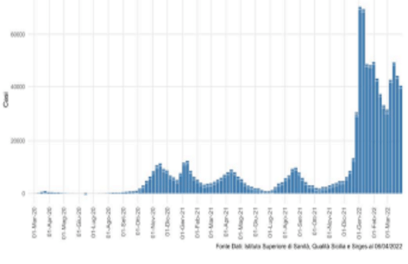 Nella settimana dal 28 marzo al 3 aprile continua a registrarsi un lieve decremento dei nuovi contagi. L’incidenza è pari a 40.331 (-8.49%), con un valore cumulativo di 834.37/100mila abitanti: il tasso di nuovi positivi più elevato rispetto alla media regionale si è registrato nelle province di Messina (1.238), Trapani (935), Agrigento (909) e Caltanissetta (904). Le fasce d’età maggiormente a rischio risultano quelle tra gli 11 e i 13 anni (1.325/100mila abitanti), i 6 e i 10 anni (1.321) e tra i 14 e i 18 anni (1.213). Le nuove ospedalizzazioni tornano nuovamente a diminuire e i tre quarti dei pazienti ricoverati nella settimana risultano non vaccinati o con ciclo vaccinale non completato.