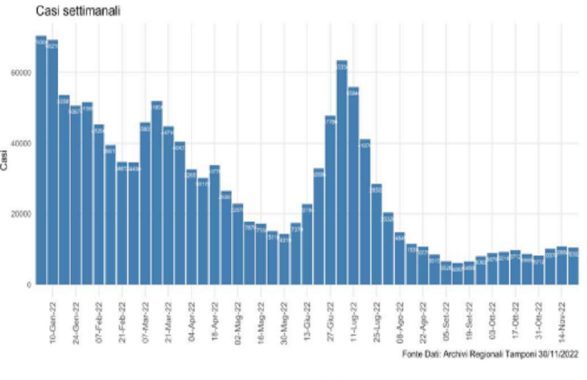 Nella settimana dal 21 al 27 novembre la curva epidemica da Covid segna un lieve decremento delle nuove infezioni: sono stati registrati 10.392 nuovi casi di positività (- 4.29% rispetto ai sette giorni precedenti) e un’incidenza cumulativa di 216 infetti per 100.000 abitanti. Tassi di nuovi positivi più elevati rispetto alla media regionale si sono avuti nelle province di Catania (236/100.000 abitanti), Enna (231/100.000), Palermo (225/100.000), Messina (223/100.000), Trapani (222/100.000) e Siracusa (220/100.000).