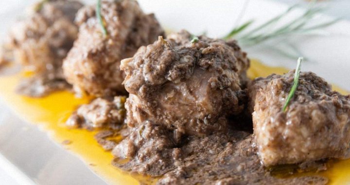 Scaldare in un tegamino quattro cucchiaiate di olio extra vergine di oliva, metterci gli spicchi d’aglio, spappolarli, aggiungere il fegato bollito a parte, mischiarlo al soffritto e ridurlo in poltiglia aiutandosi con i rebbi di una forchetta. Infine unire il trito di noci e far cuocere il tutto a fuoco tenue finche la miscela è perfettamente amalgamata. Versare quindi mezzo litro di aceto di vino bianco e far sobbollire sull’angolo del fornello fino a quando la salsina diventa omogenea. In una terrina provvista di coperchio sistemare a strati i pezzi di gattuccio lessato e ricoprire ogni strato con la salsa ben calda. Mettere il coperchio e lasciar riposare per almeno ventiquattr’ore prima di servirlo. Più riposa, più prende gusto. Buon appetito da Nonna Itala.