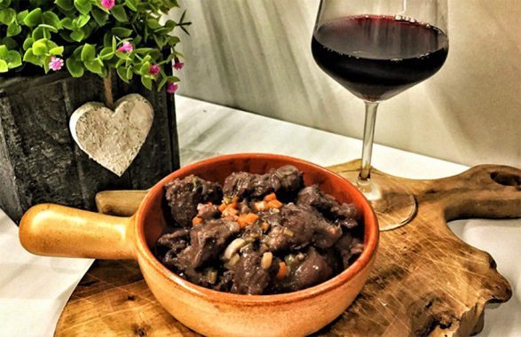 Trascorsi i 40 minuti, versare nella carne il mezzo litro di vino rosso, rimettere il coperchio e proseguire la cottura per oltre un’ora e mezzo. Controllando ogni tanto e irrorando la carne con il sugo di fondo e, se necessario, con qualche cucchiaiata di acqua bollente. Poco prima di servirla, tagliare la carne in pezzi, disporli al centro di un piatto di portata e bagnarli con il fondo di cottura passato con un colino. Buon appetito da nonna Itala.