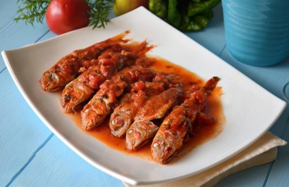 Ingredienti: 6 etti di triglie; mezzo bicchiere d’olio extra vergine di oliva; mezzo mazzo di prezzemolo; un mazzetto di foglie di finocchietto selvatico; 2 cipolline novelle; uno spicchio di aglio; due pomodori maturi; un pizzico di pepe; due pizzichi di sale.
