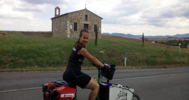 La città di Viterbo ha salutato il passaggio di Myra Stals, olandese adottata dall’Italia da tanti anni, che da Torino sta percorrendo la via Francigena in bicicletta, per promuovere la sua battaglia personale a favore dell’ambiente.