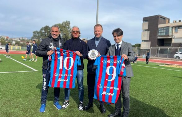 Confidiamo che dalla nostra città arrivi la spinta giusta per la stagione dei ragazzi di mister Toscano». Così il sindaco di Misterbianco Marco Corsaro, salutando in campo la squadra del Catania FC che, da oggi, si allenerà allo Stadio “Valentino Mazzola” della città etnea. La società di Ross Pelligra e l’Amministrazione Corsaro hanno formalizzato l’intesa per svolgere gli allenamenti dei rossazzurri nello storico impianto misterbianchese, nelle more del ripristino del “Cibalino” e per l’indisponibilità dello Stadio Massimino di Catania. Il sindaco Corsaro, accompagnato dall’assessore al ramo Piero Pignataro, ha consegnato lo stemma della Città di Misterbianco alla società, dando poi un incoraggiamento ai calciatori e allo staff rossazzurro e intrattenendosi con l’amministratore delegato Vincenzo Grella e l’allenatore Domenico Toscano.