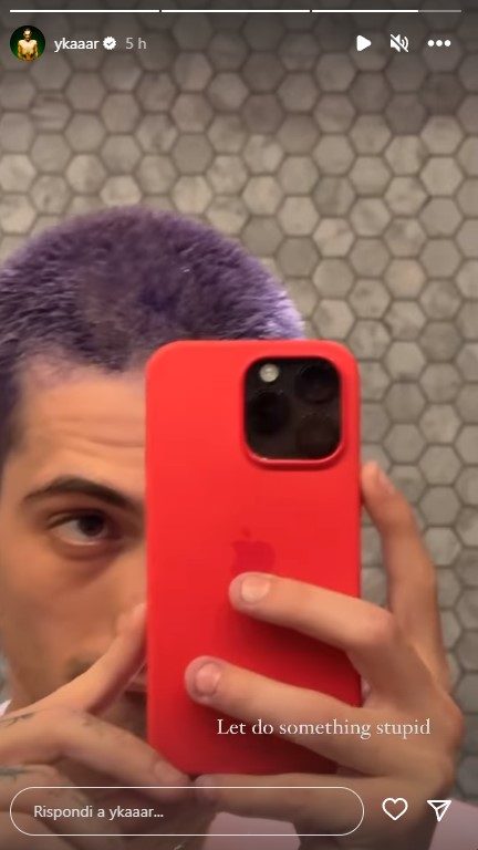 Una scelta casuale? Probabilmente no, considerando che il viola è uno dei colori che va per la maggiore nella nuova stagione primaverile. Damiano presta sempre attenzione alle tendenze del momento per essere sempre sul pezzo e, per dare ancora maggiore enfasi al suo nuovo look, ha scritto la frase “Let do something stupid”, cioè “Facciamo qualcosa di stupido”.