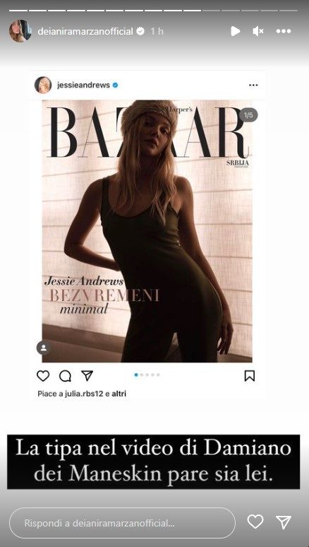 Nella Storia successiva compare la foto di Jessie Andrews, con la scritta: “la tipa nel video di Damiano dei Maneskin pare sia lei”. La ragazza 31enne ha debuttato nel mondo dell’hard ad appena 18 anni quando un amico le parlò dell’ingente somma di denaro guadagnata per una semplice comparsa in un film per adulti.