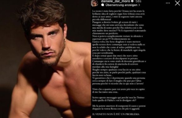 Proprio ieri sera Daniele Dal Moro ha fatto una diretta sulla piattaforma di microblogging Twitter spiegando i suoi veri motivi della rottura con oriana non trattenendosi minimamente. Dopo la diretta Daniele ha postato su Instagram una storia dove criticava Oriana e spiegava il reale motivo della separazione, ma la storia è stata eliminata pochi istanti dopo, ma chiaramente gli screenshot fatti dai suoi sostenitori della storia su Instagram si sono diffusi immediatamente in rete.