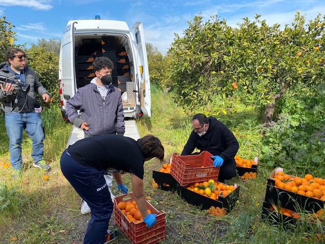 Una gioiosa raccolta di agrumi, nei cinque ettari di un appezzamento di terreno capace di produrre circa ventimila kg di arance, con il bollino di provenienza di un terreno confiscato alla mafia e lo stemma del Comune di Catania che proseguirà anche nei prossimi giorni per dare contributo non solo simbolico a chi è più bisognoso di aiuto. All’iniziativa hanno partecipato volontari e rappresentanti di Legambiente Catania, l’Angelo Federico Onlus, Asaec Associazione Antiestorsione di Catania, Movimento Cristiano Lavoratori, I Siciliani Giovani, Arci Catania, Il Giardino di Scidà, Forum Associazioni Familiari, Coordinamento Associazioni Forza Intervento Rapido, Meta Cometa APS, Libera, Addio Pizzo, Comunità di Sant’Egidio.
