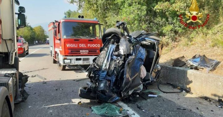 Sul posto i carabinieri, i sanitari del 118 e i vigili del fuoco. Il luogo dello scontro nel territorio comunale di Roccasecca dei Volsci. Una donna, che viaggiava all’interno dell’autovettura, è rimasta ferita e si troverebbe in condizioni gravissime. E’ stata trasportata in eliambulanza all’ospedale Gemelli di Roma.