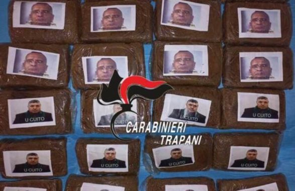 ma la sorpresa è stata quando i carabinieri hanno ispezionato il magazzino e si sono trovati dinanzi a una partita di stupefacenti di vario tipo, tra cui anche panetti di hashish ‘marchiati’ con le foto di Matteo Messina Denaro, di Salvatore Riina, e del personaggio de Il padrino. I carabinieri hanno complessivamente sequestrato 13 kg di hashish, 700 grammi di cocaina pura e 700 grammi di marijuana contenuta in diversi sacchetti di plastica.