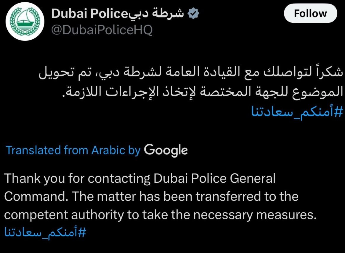 Molte persone hanno ripubblicato il post indignate, chiedendo l’intervento immediato della polizia locale per il mancato rispetto della fede religiosa e della privacy delle persone. Non si è fatta attendere la replica della Polizia di Dubai, che ha ringraziato chi ha ricondiviso il post che nel frattempo ha raggiunto le 2,5 milioni di visualizzazioni, garantendo che il filmato è stato inviato all’autorità competente per prendere le misure necessarie.