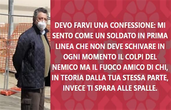 “Devo farvi una confessione – scrive . mi sento come un soldato in prima linea che non deve schivare in ogni momento i colpi del nemico, ma il fuoco amico di chi, in teoria dalla tua stessa parte, invece ti spara alle spalle”.