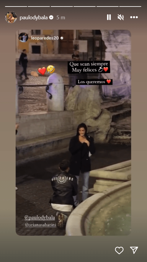L’attaccante giallorosso tiene in mano la scatola con l’anello, in quella che presumibilmente è stato il luogo della proposta.
