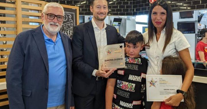 Un traguardo importante, quello raggiunto da Simona Dionisi, in quanto il Ray Kroc Award, premio dedicato all’uomo che ha fatto conoscere MCDonald’s nel mondo, è un riconoscimento internazionale assegnato ogni anno ai direttori dei ristoranti del marchio che, oltre a distinguersi per aver portato risultati eccellenti, hanno dimostrato di interpretare al meglio i valori e la cultura di McDonald’s. L’attenzione al cliente, la capacità di costruire una squadra di lavoro affiata, l’impegno costante per raggiungere gli obiettivi, sono le qualità tenute in considerazione dalla giuria, che ogni anno seleziona l’1% dei direttori dei ristoranti MCDonald’s nel mondo. Tra i premiati di quest’anno figura anche la direttrice del ristorante di via Mascagni, già insignito nel 2020 del Golden Arch come miglior franchisee del marchio al mondo per il licenziatario Amedeo Avenale, che gestisce 8 punti vendita sparsi tra i Castelli e il litorale romano.