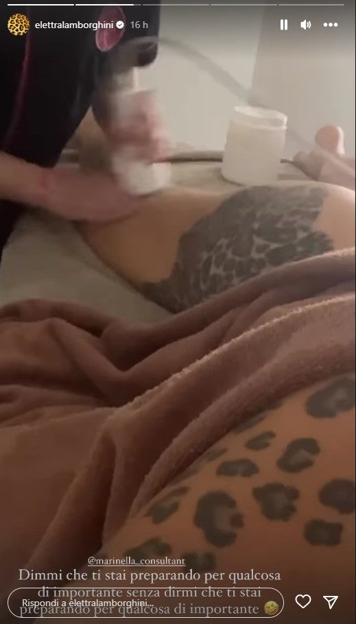 Successivamente ha postato un video dove si sottopone ad un trattamento di massaggio focalizzato suo lato B, uno dei suoi “pezzi forti”, accompagnato dalla scritta: “Dimmi che ti stai preparando per qualcosa di importante senza dirmi che ti stai preparando per qualcosa di importante”.