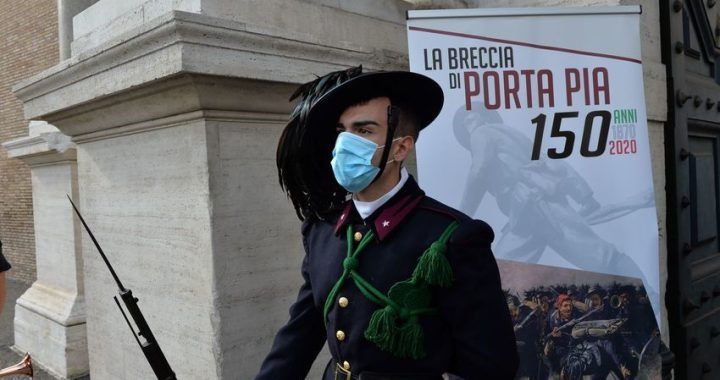 Un picchetto armato di Bersaglieri, corpo dell’Esercito protagonista della presa di Roma, ha reso gli onori alle Autorità indossando l’uniforme storica in dotazione alle truppe dell’epoca.