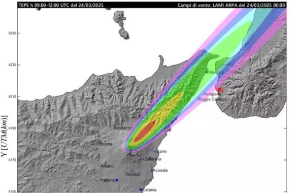 Secondo le previsioni, un’eventuale nube eruttiva si disperderebbe in direzione Nord-Est, con possibili effetti sulle province di Messina e sulla Calabria.