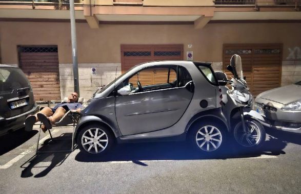Fabio Rigoni, residente di Terracina, denuncia la problematica delle auto parcheggiate abusivamente davanti al suo garage, soprattutto dopo le 20:00 quando non è disponibile il carro attrezzi per la rimozione. La sua foto sdraiato accanto a un’auto che ostruisce il passo carrabile è diventata virale sui social.