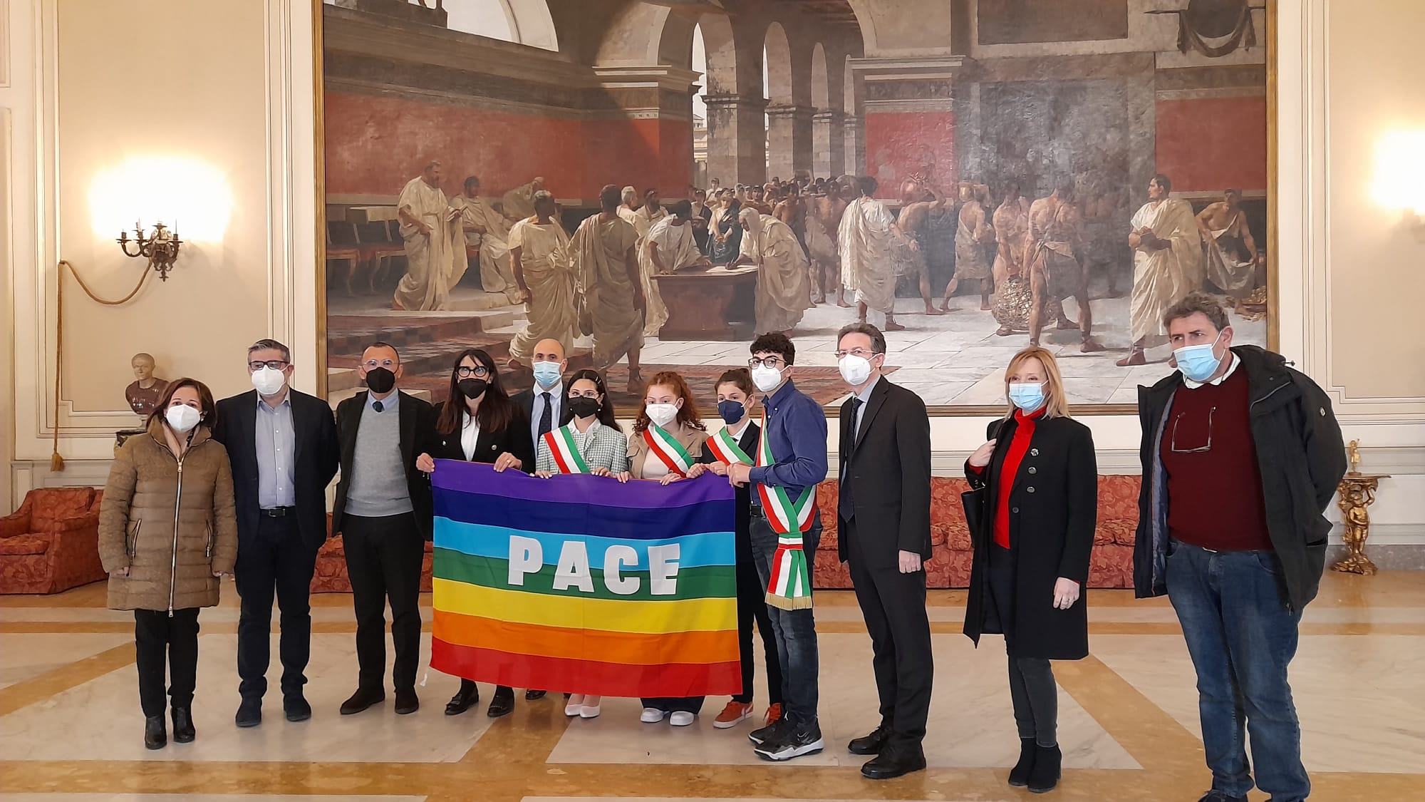 “Facciamo Pace” è l’accorato appello che gli studenti catanesi, con quattro baby sindaci e sindache, hanno lanciato da Palazzo degli Elefanti nel corso della presentazione della “Marcia per la Pace delle scuole di Catania” che si svolgerà sabato 9 aprile lungo via Etnea, organizzata dal Comune con l’assessorato alla Pubblica Istruzione. E’ stato il sindaco facente funzioni Roberto Bonaccorsi, insieme con l’assessore alla Pubblica Istruzione Barbara Mirabella e l’assessore alle Politiche sociali Giuseppe Lombardo, ad accogliere i quattro giovanissimi “sindaci” Giordana Blandini, Sara Maugeri, Antonino Chiara e Francesco Finocchiaro, in rappresentanza degli istituti comprensivi Grazia Deledda, Vitaliano Brancati, Giuseppe Parini, San Giovanni Bosco e di tutte le scuole che saranno protagoniste della speciale camminata di sabato.