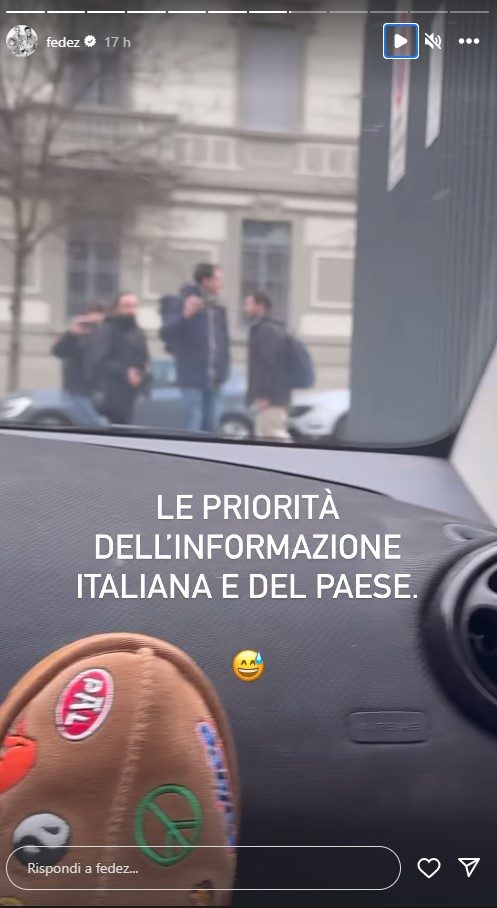 Fedez ha postato una serie di Stories dal suo profilo Instagram prendendosela con i giornalisti, in una delle quali ha scritto: “Neanche fuori da casa di Messina Denaro c’era così tanta gente”. In seguito ha rivolto le sue attenzioni a Myrta Merlino: “Ormai la Paloma mi è diventata una star perché Pomeriggio Cinque è da diversi giorni che mette un giornalista piantonato fuori da casa nostra nella speranza di vedere non so che cosa e Myrta Merlino devo dirti che se il tuo interesse giornalistico è nei confronti della solidità degli escrementi di Paloma, ti tengo aggiornata” – parlando provocatoriamente dei bisogni della sua cagnolina Paloma.