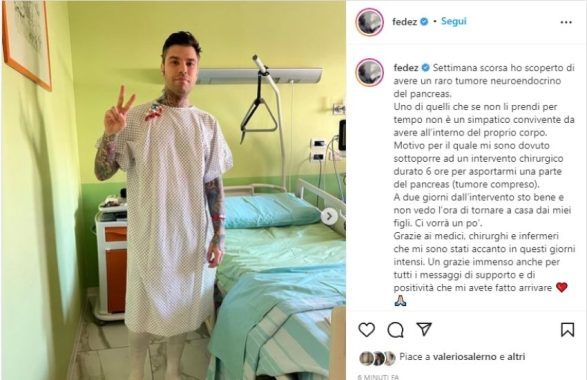 Con un post, Fedez, ha annunciato ai suoi fan che la settimana scorsa ha scoperto di avere un raro tumore neuroendocrino del pancreas.