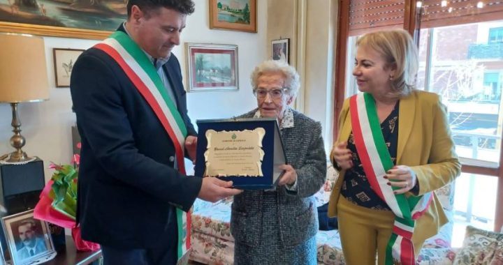 Questa mattina il sindaco di Latina, Matilde Celentano, ha reso omaggio alla signora Leopolda Anita Grossi in occasione del suo centesimo compleanno. La celebrazione, arricchita dalla presenza delle figlie Loredana e Maria Cristina, nipoti, pronipoti e altri parenti, si è svolta nella casa della signora Grossi, testimoniando il calore e l’affetto della comunità locale nei suoi confronti.