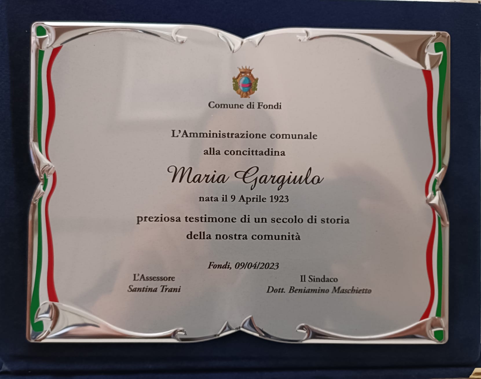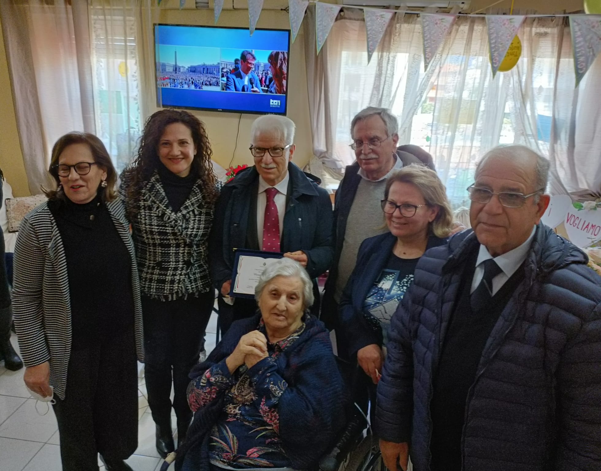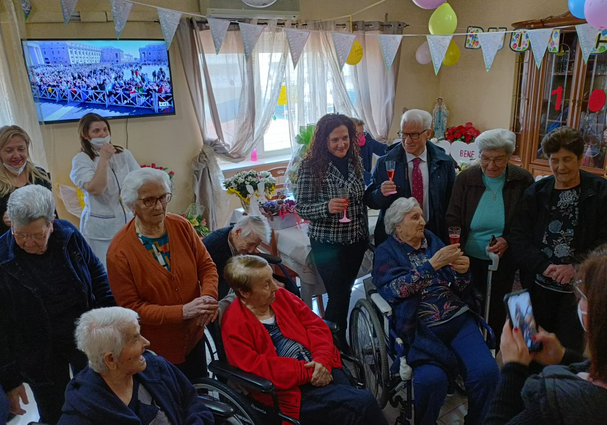 Visita a sorpresa la mattina di Pasqua presso la comunità alloggio per anziani “Sant’Onorato” da parte del sindaco di Fondi Beniamino Maschietto, dell’assessore al settore Demoanagrafico Santina Trani e del delegato alle politiche della Terza Età Arcangelo Peppe che hanno raggiunto la concittadina Maria Gargiulo per augurarle una Buona Pasqua ma anche e soprattutto i migliori auguri per il suo primo compleanno a tre cifre. Grande festa in famiglia, con gli ospiti e il personale della struttura, un brindisi, una torta e tanto affetto per omaggiare “una preziosa testimone di un secolo di storia della città”. Grande emozione per la neo centenaria ma anche per il primo cittadino che ha avuto l’occasione di incontrare i figli Bruna, Paola e Sandro, quest’ultimo suo compagno di scuola al ginnasio.